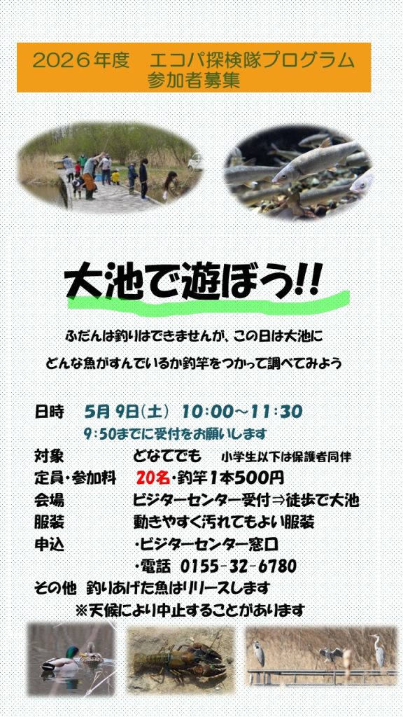 ふだん、釣りをすることができませんが、この日は、大池にどんな魚がくらしているのか、つりあげて観察しましょう